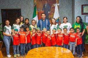 El Alcalde Mario López felicitó a los campeones, a quienes les mencionó que tan pequeños y ya forman parte de la historia de esta frontera, semillero de campeones.