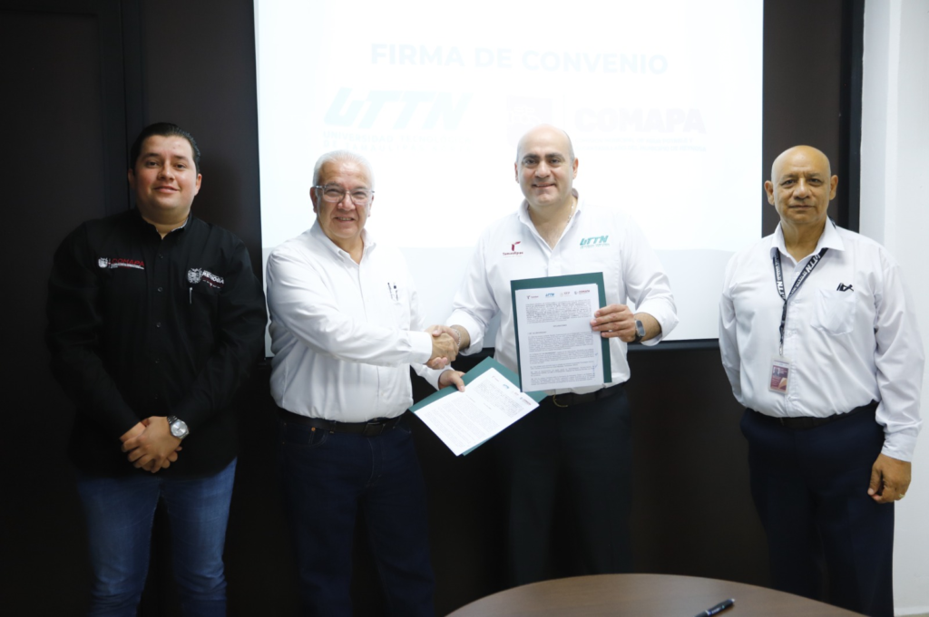 Durante la firma, el Rector de la UTTN, Mtro. Edgar Garza Hernández, destacó que este acuerdo abre nuevas oportunidades para los estudiantes, permitiendo que su educación trascienda las aulas y se conecte con actividades del ámbito gubernamental y de servicios públicos.
