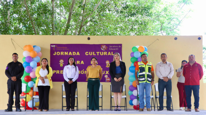 San Fernando, Tam.– En representación de la alcaldesa Verónica Aguirre, autoridades municipales y educativas participaron en la Jornada Cultural para la Prevención y Auxilio, llevada a cabo en la Escuela Primaria Luis Donaldo Colosio Murrieta, con el objetivo de fortalecer la cultura de la prevención entre las y los estudiantes.