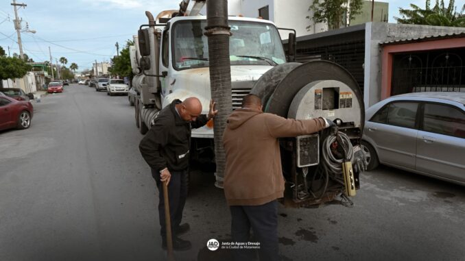 H. Matamoros, Tamaulipas.- Como parte de las acciones permanentes para el cuidado y mantenimiento de la infraestructura sanitaria, el camión vactor de la Junta de Aguas y Drenajes realizó su recorrido en diversas colonias de la ciudad, atendiendo puntos prioritarios para el correcto funcionamiento del drenaje.