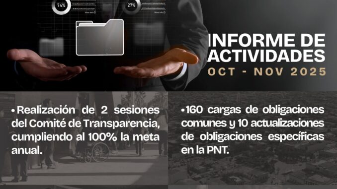 Durante el periodo evaluado, se llevaron a cabo dos sesiones del Comité de Transparencia, se realizaron 160 cargas de obligaciones comunes en la Plataforma Nacional de Transparencia y se efectuaron 10 actualizaciones de obligaciones específicas, garantizando el cumplimiento de la normatividad vigente y el acceso oportuno a la información, para que brille Matamoros con un gobierno claro y ordenado.