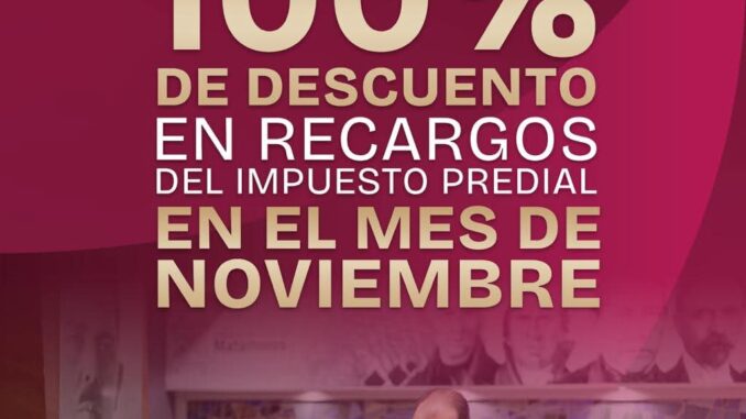 Matamoros, Tam.- El Gobierno de Beto Granados invita a la ciudadanía a aprovechar durante todo el mes de noviembre el 100% de descuento en recargos del Impuesto Predial, una medida que busca apoyar la economía de las familias matamorenses y fortalecer la recaudación responsable que impulsa el desarrollo de nuestra ciudad.