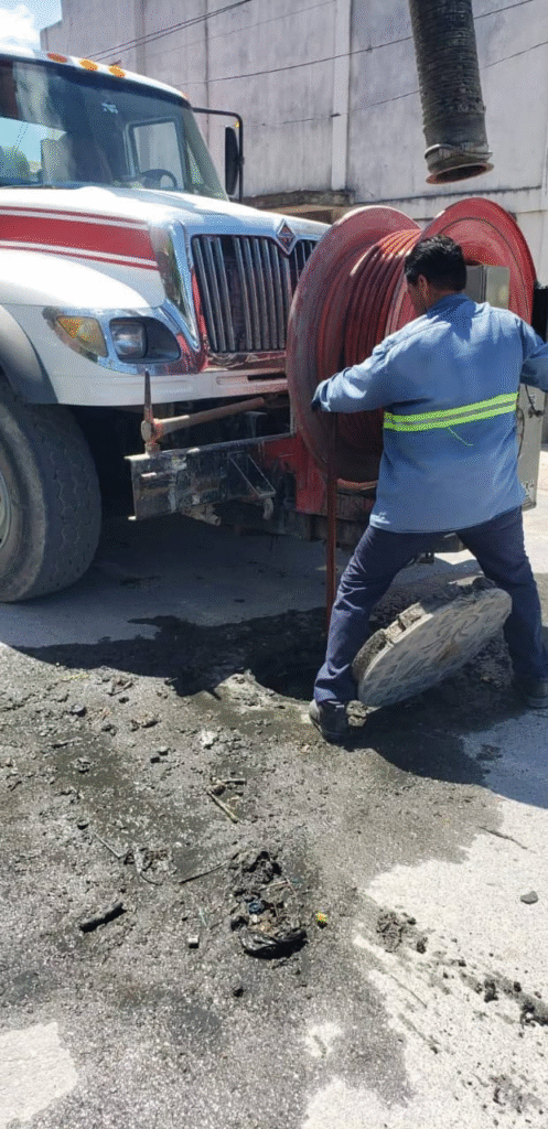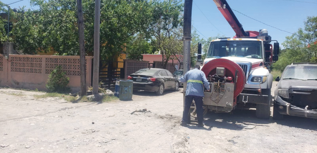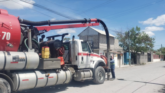 H. Matamoros, Tamaulipas.- El camión vactor continúa recorriendo las colonias de la ciudad para realizar trabajos de limpieza y desazolve en la red de alcantarillado. En esta ocasión, las acciones se llevaron a cabo en la Colonia Expofiesta Sur.