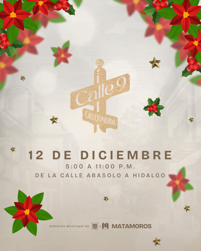 H. Matamoros, Tamaulipas.- El gobierno de Beto Granados lanzó una invitación especial a todas las familias matamorenses para disfrutar de la edición navideña de la tradicional Callejoneada en la Calle 9, un espacio que se llenará de luz, música y espíritu festivo. Este evento representa una oportunidad para convivir en un ambiente seguro y alegre.