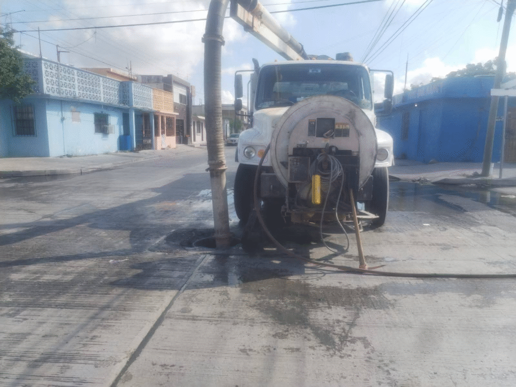 H. Matamoros, Tamaulipas.- El Gobierno de Matamoros, a través de la Junta de Aguas continúa con los recorridos del camión vactor, atendiendo reportes y realizando labores de limpieza en las colonias Treviño Zapata, San Francisco, Bienestar y Carlos Salinas de Gortari.