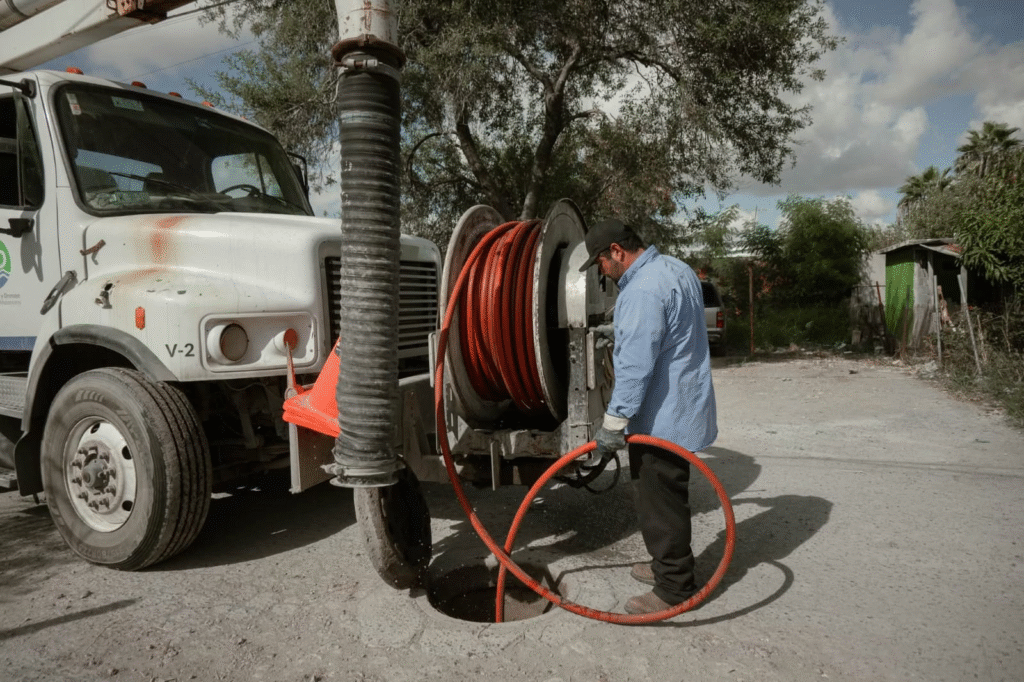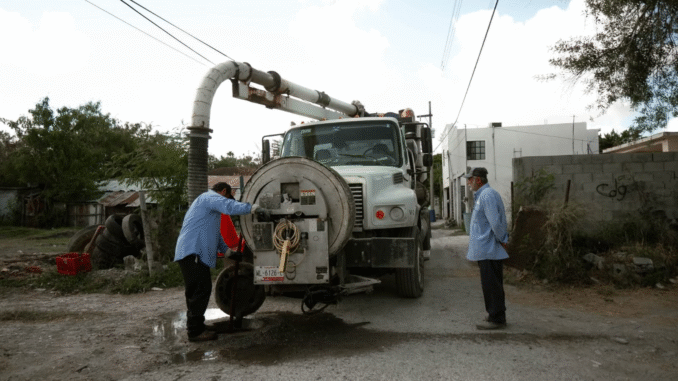 Matamoros, Tam.- El Gobierno Municipal de Beto Granados, a través de la Junta de Aguas y Drenaje (JAD), realizó labores de desazolve en la colonia Popular con el apoyo del camión vactor, con el propósito de mantener en óptimas condiciones las líneas del drenaje sanitario y evitar el derrame de aguas negras en la zona.