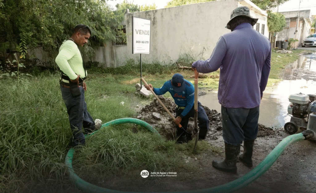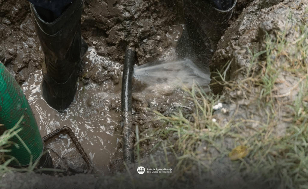 Matamoros, Tam.- El Gobierno de Beto Granados informó que esta mañana personal de la Junta de Aguas y Drenaje de Matamoros atendió de manera inmediata una fuga de agua potable en la calle Doce de la colonia Moderna.