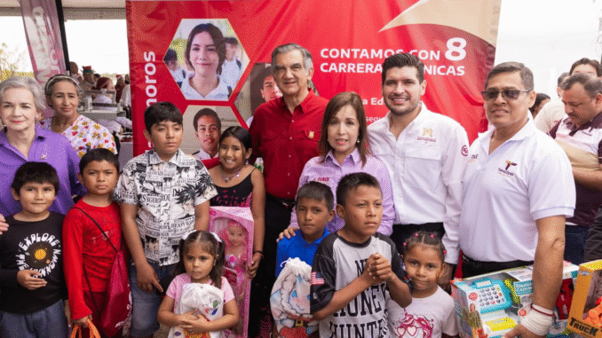 Matamoros, Tam.- Se llevó a cabo la Brigada Navideña Transformando Familias, impulsada por el Sistema DIF Estatal y el Gobierno del Estado de Tamaulipas, en coordinación con el Gobierno de Beto Granados, logrando un gran éxito en beneficio de las familias del litoral del municipio. En el evento estuvieron presentes el Presidente Municipal, Beto Granados; la Presidenta del Sistema DIF Municipal, Anita Granados; el Gobernador del Estado, Américo Villarreal Anaya; y su esposa, la señora María de Villarreal, Presidenta del Sistema DIF Estatal, refrendando el compromiso de trabajar en unidad para que brille y avance Matamoros.