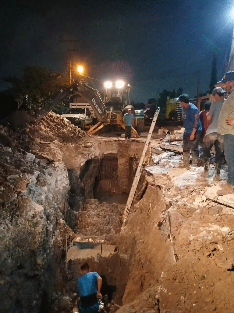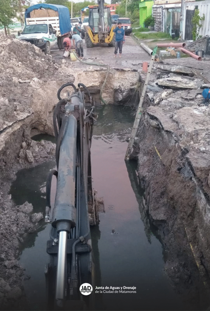 En el lugar se realiza el reemplazo de dos tubos de una línea de presión sanitaria de 10 pulgadas, con el objetivo de garantizar un servicio más eficiente y seguro para los habitantes del sector. Estas acciones forman parte de la visión del renacimiento de Matamoros, que impulsa obras esenciales en beneficio de las colonias.
