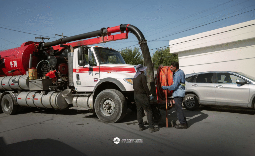 H. Matamoros, Tamaulipas.- El Gobierno de Matamoros, a través de las cuadrillas de la Junta de Aguas y Drenajes, continúa trabajando en el mantenimiento de la infraestructura urbana. En esta ocasión, el camión vactor realizó labores de limpieza y desazolve en la calle 16 de Septiembre, ubicada en el Fraccionamiento Moderno.