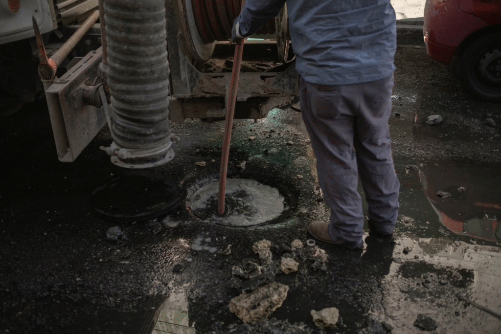 En las calles 10 González y Abasolo, en la zona centro, personal del área de Vactor de la Junta de Aguas y Drenaje realizó trabajos de limpieza y desazolve, extrayendo una gran cantidad de piedras de grasa que impedían el flujo adecuado de las aguas residuales.