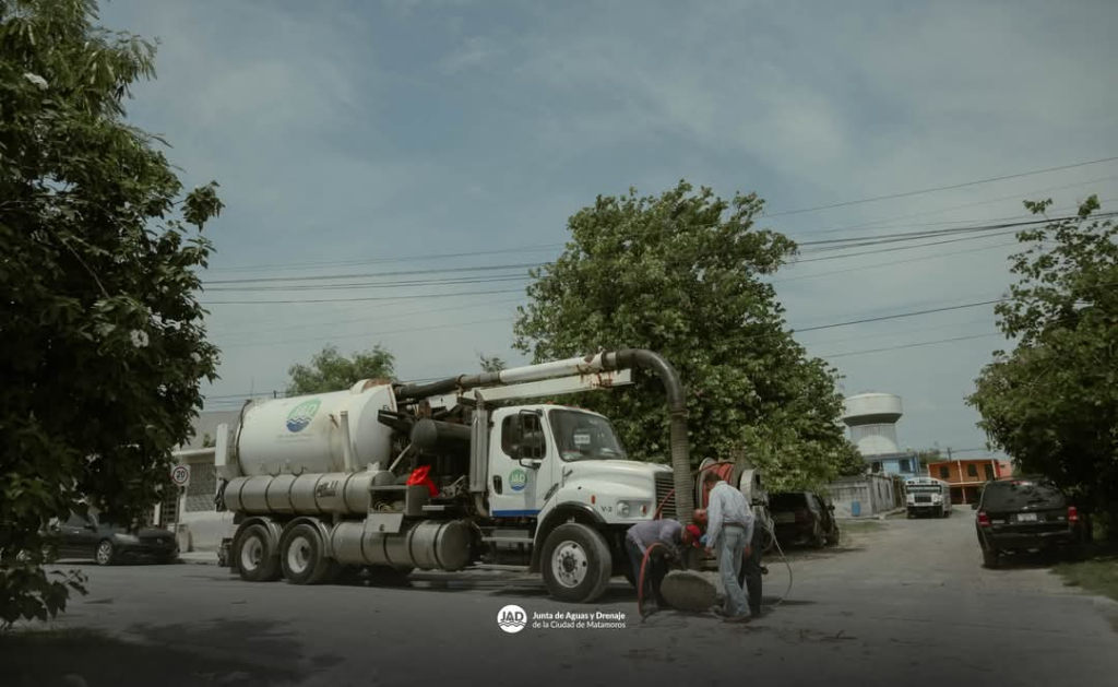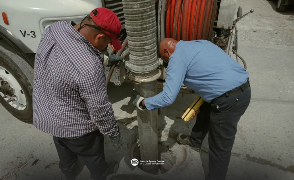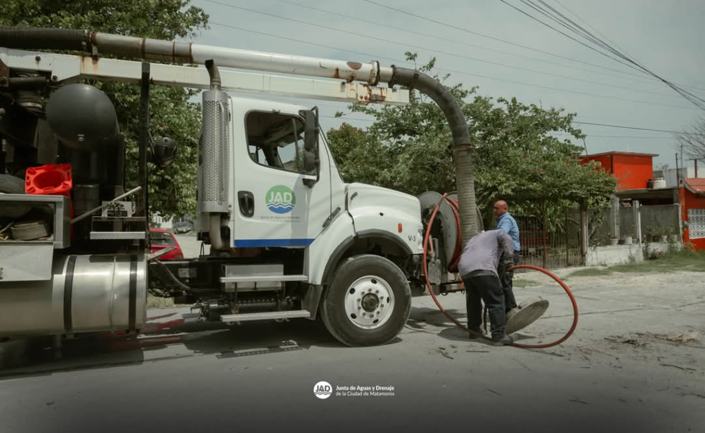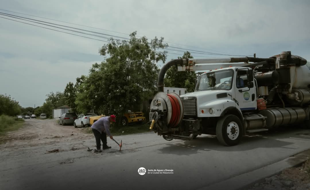 H.Matamoros, Tamaulipas.- El Gobierno Municipal de Matamoros, a través de la Junta de Aguas y Drenaje (JAD), continúa trabajando con firme compromiso para mejorar los servicios públicos en beneficio de la ciudadanía. En esta ocasión, el personal de la JAD se movilizó hasta la colonia Campestre del Río 1, donde llevó a cabo labores fundamentales para el saneamiento y el cuidado del agua.