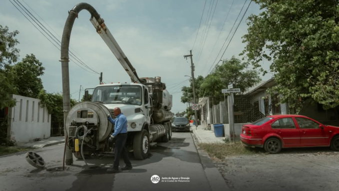 H.Matamoros, Tamaulipas.- El Gobierno Municipal de Matamoros, a través de la Junta de Aguas y Drenaje (JAD), continúa trabajando con firme compromiso para mejorar los servicios públicos en beneficio de la ciudadanía. En esta ocasión, el personal de la JAD se movilizó hasta la colonia Campestre del Río 1, donde llevó a cabo labores fundamentales para el saneamiento y el cuidado del agua.