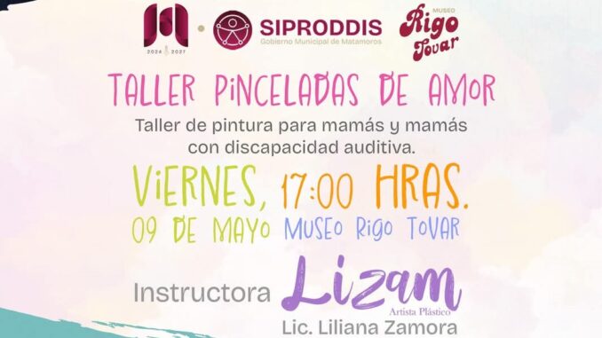 H. Matamoros, Tamaulipas.- En el marco de la celebración del Día de las Madres, el Gobierno Municipal hizo una cordial invitación a todas las mamás, incluidas aquellas con discapacidad auditiva, a participar en el Taller de Pintura «Pinceladas de Amor», un espacio pensado para convivir, crear y expresar emociones a través del arte.