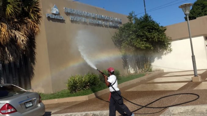 Protección Civil, llevaron a cabo la desinfección del exterior del Hospital