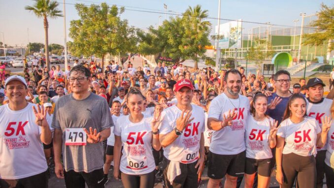 Cd. Victoria, Tamaulipas. – Con la participación de más de 350 corredores, la presidenta del Sistema DIF Victoria Lucía Rodríguez de Gattás y el alcalde Lalo Gattás, encabezaron este sábado la primera edición de la carrera «Pasos por la Educación» organizada para brindar apoyo a niñas y niños de escasos recursos con útiles escolares. Con el mensaje «el deporte unifica, fortalece los valores y da una mentalidad ganadora», Lucy y Lalo guiaron el contingente de niños, jóvenes y adultos mayores de Victoria por los 5 kilómetros de distancia, en el que participó el Club Sin Límite de deporte adaptado.