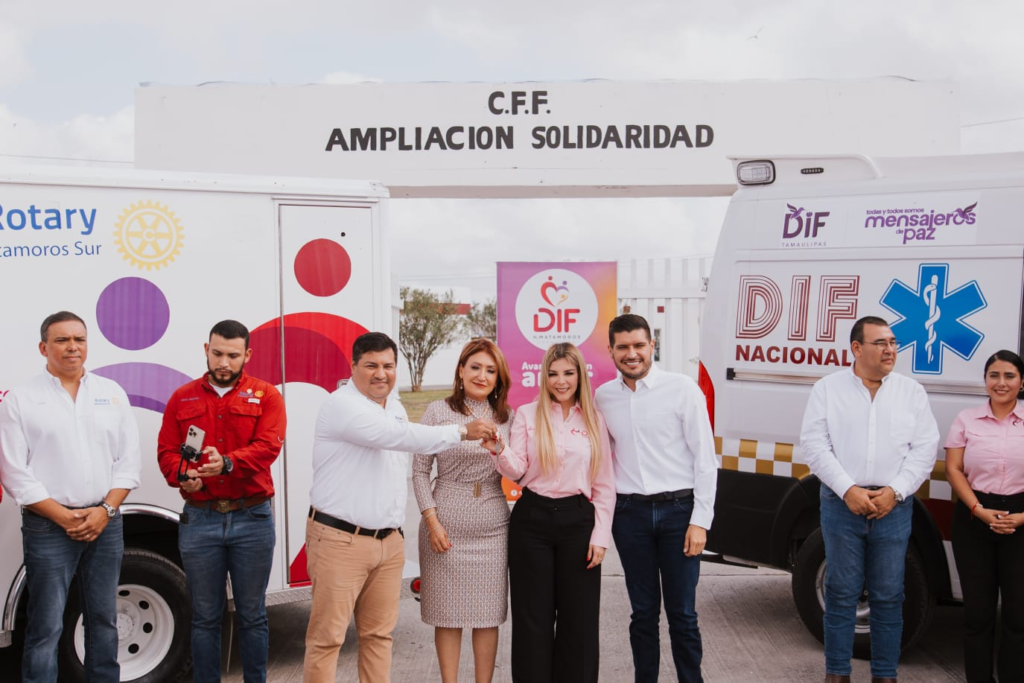 Matamoros, Tamaulipas.- En un esfuerzo por fortalecer la atención médica en la ciudad, el Sistema DIF Matamoros recibió la donación de una ambulancia por parte del Club Rotario Matamoros Sur. Con esta unidad, el padrón vehicular para emergencias asciende a tres, gracias a las entregas previas del Gobierno del Estado de Tamaulipas, el Sistema DIF Tamaulipas y el Gobierno Municipal.
