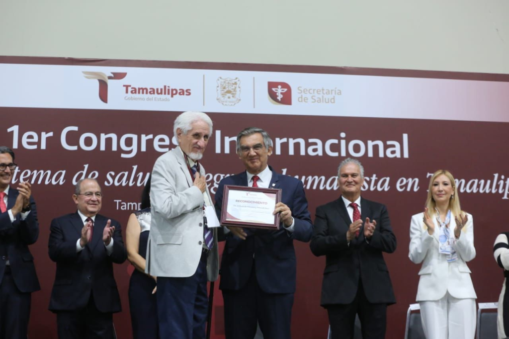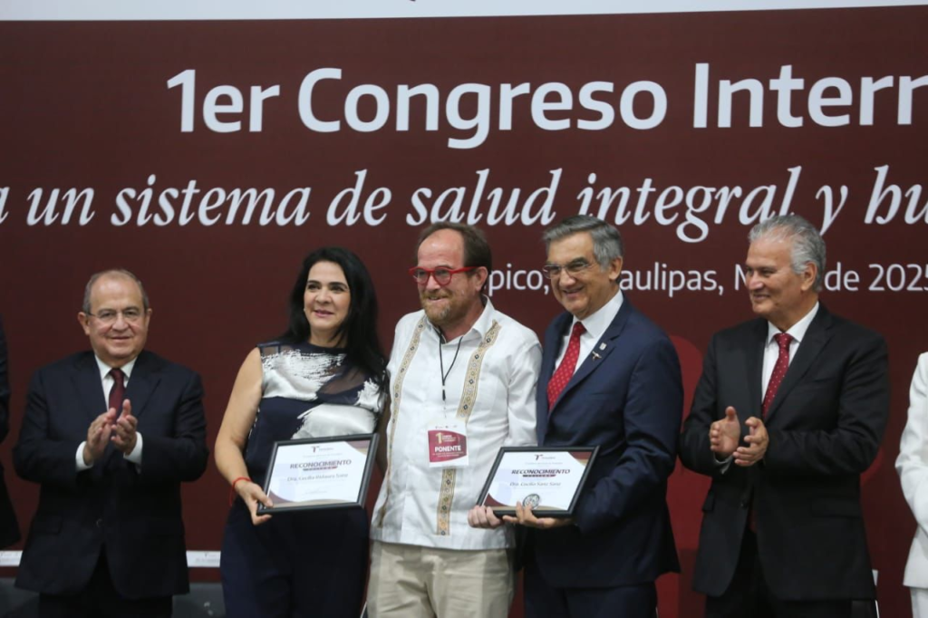 Durante la ceremonia, el gobernador también develó la placa que convierte al Centro de Convenciones Expo Tampico en el primer edificio público cardio protegido y, además, entregó reconocimiento póstumo a las doctoras Cecilia Sanz Sanz y Cecilia Ridaura Sanz por su invaluable legado en la medicina y su incansable compromiso con la salud pública, el cual fue recibido por el doctor Ruy López Ridaura.