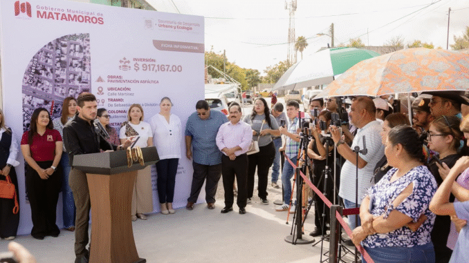 H. Matamoros, Tamaulipas.- El Presidente Municipal de Matamoros, Beto Granados, encabezó la inauguración de la calle Martínez en la colonia Guillermo Guajardo, una obra que representa un avance significativo en materia de movilidad, seguridad y calidad de vida para las familias del sector.