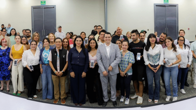 Con el propósito de fortalecer la inclusión financiera y avanzar en la digitalización del comercio local, la Presidenta municipal Mónica Villarreal Anaya, encabezó la ceremonia de capacitación y entrega de terminales digitales para el cobro con tarjetas bancarias a emprendedores de la localidad.