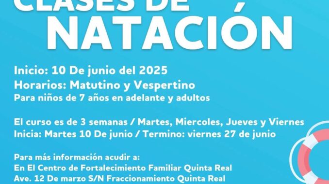Este curso inicia el próximo martes 10 de junio en turno matutino y vespertino, que van desde las siete de la mañana hasta las 10 de la noche de martes a viernes. Cabe resaltar que las clases tienen una duración de 3 semanas, con cuota de recuperación de 400 pesos, en donde los alumnos aprenderán lo esencial de la natación.