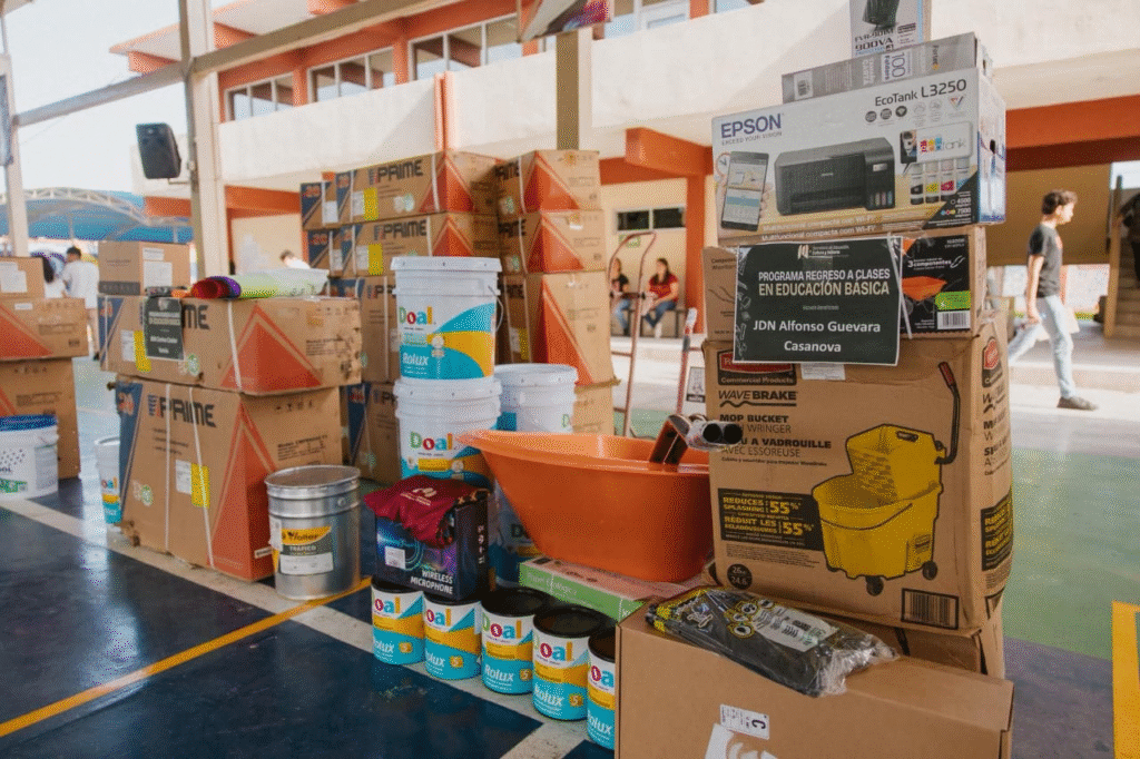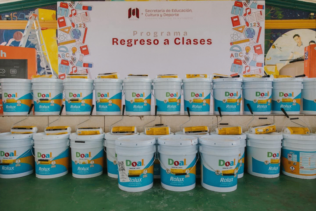 Durante la jornada en el CBTis 135, se entregaron más de 20 cubetas de pintura y herramientas para la renovación de sus instalaciones, refrendando el compromiso de esta administración con el fortalecimiento de la educación en todos los niveles.