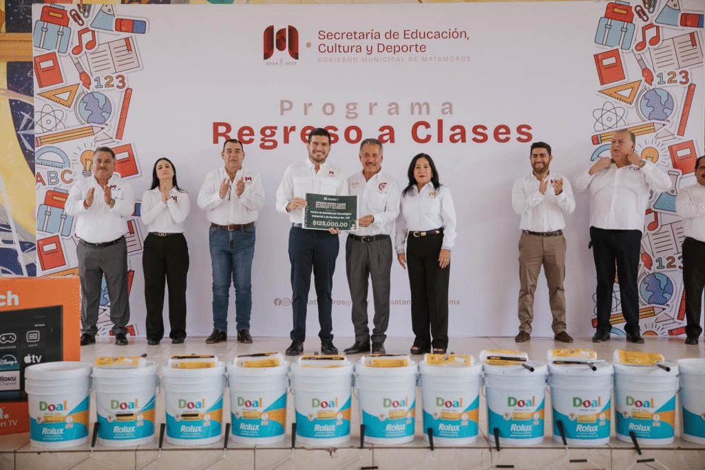 Con una inversión de 7 millones de pesos, el Gobierno de Matamoros beneficiará a un total de 68 instituciones educativas mediante apoyos en especie: 60 planteles de preescolar, primaria y secundaria recibirán cien mil pesos cada uno y ocho preparatorias urbanas y rurales contarán con 125 mil pesos en insumos y equipamiento.