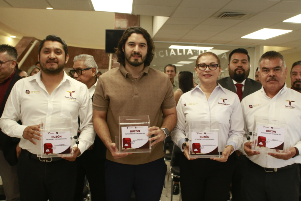 Ciudad Victoria, Tamaulipas.- Para brindar una mejor atención a los usuarios de las Juntas de Conciliación y Arbitraje, ubicadas en las oficinas gubernamentales Tiempo Nuevo, la Secretaría del Trabajo y Previsión Social, que encabeza, Luis Gerardo Illoldi Reyes y siguiendo la visión humanista del Gobierno de la Transformación que dirige, Américo Villarreal Anaya, realizó la instalación de buzones de peticiones y sugerencias.
