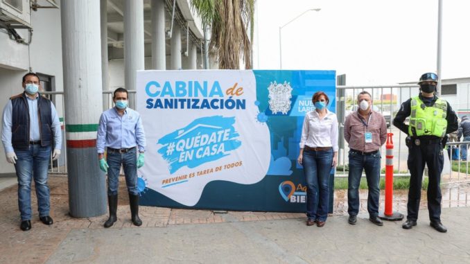 Gobierno municipal y estatal refuerzan filtros sanitarios en el Puente Internacional 1 con la instalación de la cabina sanitizante que puso en marcha el alcalde Enrique Rivas, como medida de prevención ante el Covid-19.