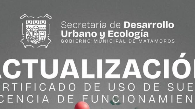 H. Matamoros, Tamaulipas.- La Secretaría de Desarrollo Urbano y Ecología, bajo las instrucciones del presidente municipal Alberto Granados Fávila, convoca y pide a la ciudadanía a mantener los trámites de Certificado de Uso de Suelo y Licencia de Funcionamiento al día, ya que son clave para operar sin contratiempos.