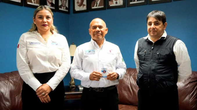 Acompañado de la secretaria de Bienestar Social, Lic. Mayra Treviño Flores, y del director de Grupos Vulnerables, C. David Reséndez Requejo, el Alcalde presentó este lunes el nuevo diseño de la credencial que ya se está tramitando en forma gratuita en las oficinas de esa dependencia, ubicada en la planta baja de la Presidencia Municipal.