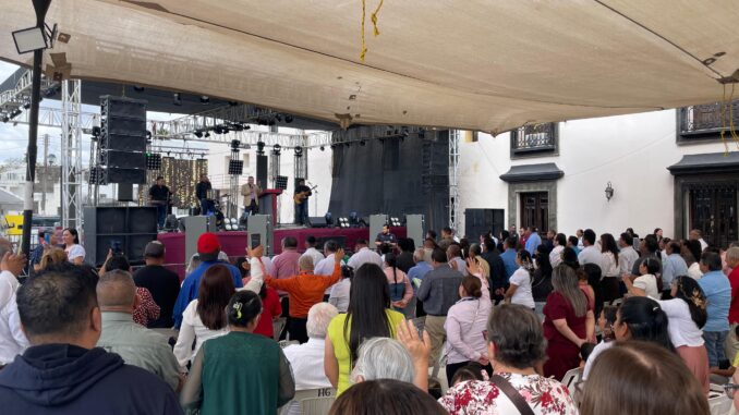 Visiblemente conmovida y con la voz quebrada por la emoción, la alcaldesa Verónica Aguirre de los Santos dijo: “Le hice una pregunta a Dios y Dios me la respondió”; a la vez, agradeció la presencia de todos los sectores y destacó la importancia de la unidad del pueblo más allá de cualquier diferencia.