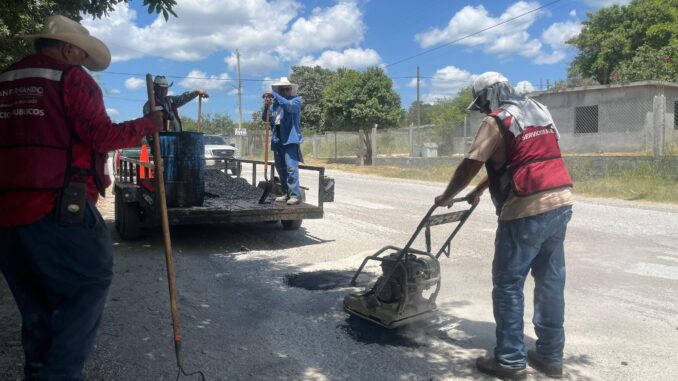 SAN FERNANDO, TAM.-El Gobierno Municipal que encabeza la presidenta Verónica Aguirre llevó a cabo trabajos de bacheo aislado en la calle Simón Bolívar, ubicada en la colonia Ampliación Loma Alta.