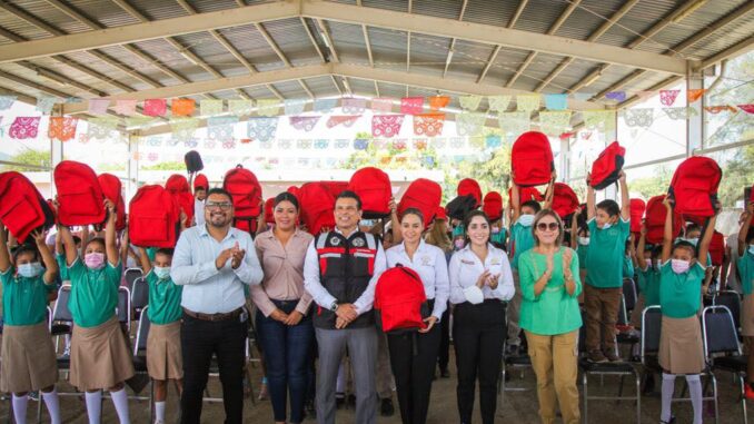 Cd. Victoria, Tamaulipas. – En apoyo a la educación y economía de padres de familia, la presidenta del Sistema DIF Victoria, Lucía Rodríguez de Gattás y el alcalde Eduardo Gattás Báez, entregaron mochilas escolares a alumnos de la escuela de «Mártires de la Revolución» del ejido Congregación Caballeros. En su mensaje, la primera dama destacó que el programa «Pasos por la educación», fue creado para brindar oportunidades de progreso en una educación humanista y transformadora pensando en un mejor futuro de las próximas generaciones.