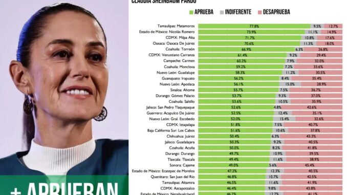 En un México dividido en opiniones sobre el rumbo del país, hay un municipio que no solo destaca, sino que lidera con contundencia: Matamoros, Tamaulipas; donde la aprobación ciudadana hacia la presidenta Claudia Sheinbaum Pardo alcanza un asombroso 77.8%, la más alta a nivel nacional, según la encuesta de Arias Consultores realizada recientemente.