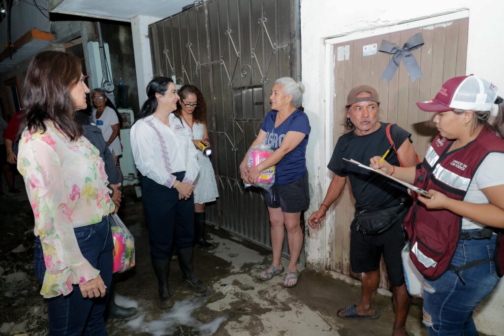 Mónica Villarreal Anaya brinda apoyos alimentarios a familias cercanas a la margen del río Pánuco.
