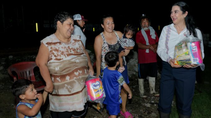 Mónica Villarreal Anaya brinda apoyos alimentarios a familias cercanas a la margen del río Pánuco.
