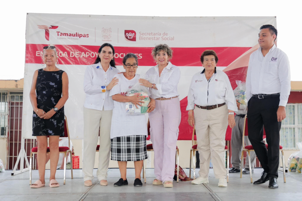 A la entrega de las despensas, asistió también, Fernando González Soto, Director de Centros de Bienestar y Parques de la SEBIEN; y Magdalena Peraza Guerra, Directora regional de la SEBIEN en Tampico, así como síndicos, regidores, y demás funcionarios del gobierno local.