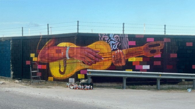 Indicó que parte del mural incluirá diseños artísticos y otra sección motivos alusivos al próximo Mundial de Futbol. Resaltando que la pintura con motivos tének aplicada en el paso a desnivel y el distribuidor vial se financió con recursos del estacionamiento municipal subterráneo, destinados al fortalecimiento de la imagen turística de la ciudad.