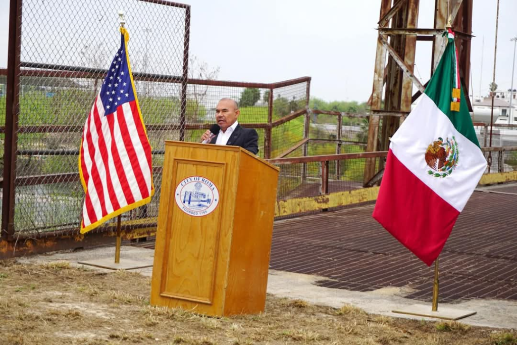 “Miguel Alemán y Roma serán ciudades hermanas para toda la vida y por siempre”, destacó en su mensaje el Alcalde, en el evento que se organizado en el lado norteamericano al pie del Puente Internacional de Suspensión.