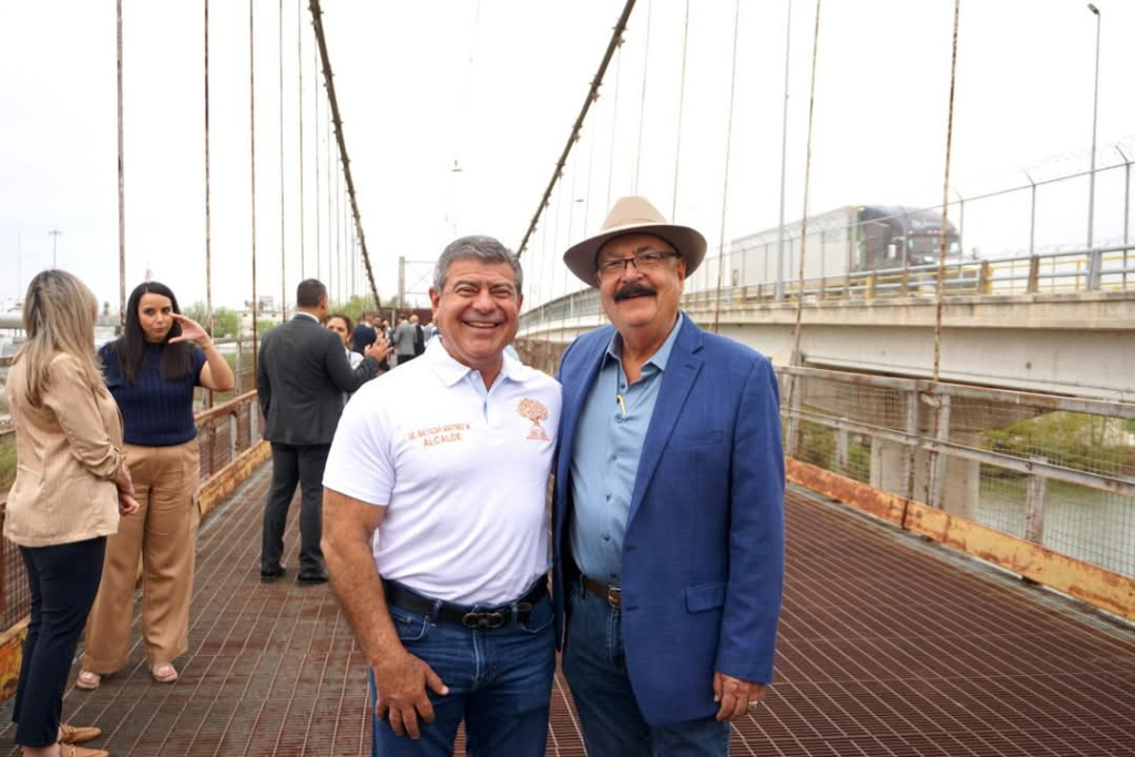 Acompañado de su esposa, Sra. Andrea Aguirre de Cortez, de la presidenta del Sistema DIF, Dra. Andrea Cortez de Cavazos, de integrantes del Cabildo, funcionarios de su gabinete, autoridades de la Agencia Nacional de Aduanas de México y otros invitados especiales, el Alcalde encabezó el recorrido hasta la mitad del Puente Internacional para ofrecer el tradicional Abrazo de Amistad a las autoridades de Estados Unidos encabezadas por el Mayor de Roma, Jaime Escobar.