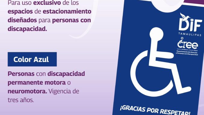 El Sistema DIF Reynosa que preside Carlos Luis Peña Garza, ofrece el trámite del tarjetón de discapacidad, el cual permite identificar a los vehículos que trasladan a personas con discapacidad y facilita el uso adecuado de los cajones especiales destinados para su movilidad.