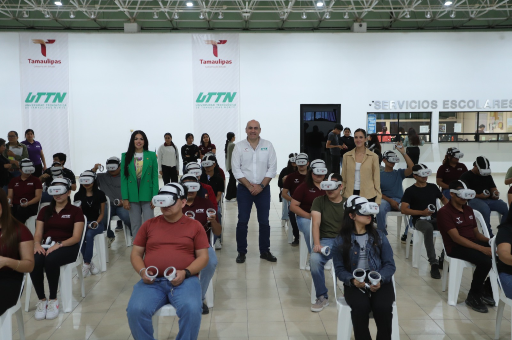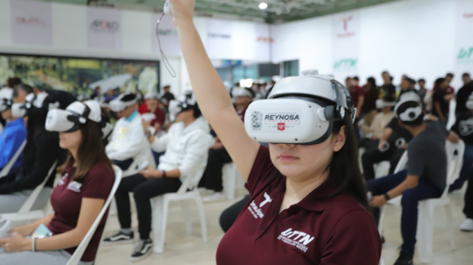 Reynosa, Tamaulipas. – Alumnos de la Universidad Tecnológica de Tamaulipas Norte, que dirige el rector Mtro. Edgar Garza Hernández, participaron en sesiones de realidad virtual impartido por la Dirección de Atención a la Juventud del Gobierno Municipal de Reynosa.