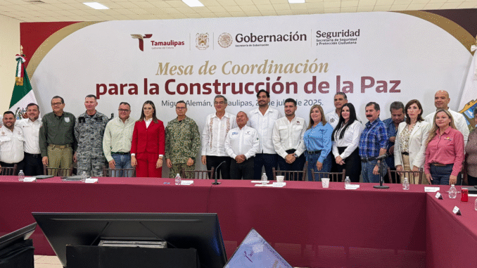 El Gobernador Constitucional del estado, Doctor Américo Villarreal Anaya presidió la sesión de la Mesa de Coordinación para la Construcción de la Paz, celebrada en la ciudad de Díaz Ordaz, Tamaulipas, la cual participó el Presidente Municipal Carlos Peña Ortiz.