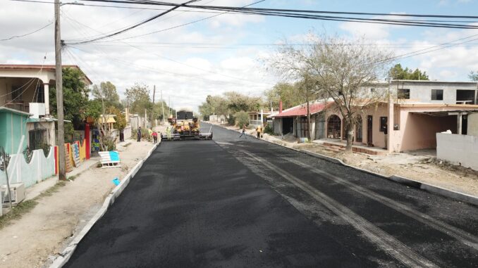 El Gobierno Municipal continúa trabajando en la aplicación de obras en la cabecera local. La pavimentación asfáltica sobre la calle Juan B. Tijerina ya inició su etapa de aplicación de asfalto, representando un avance significativo.