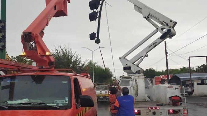 La estructura metálica que sostiene los cabezales del semáforo se colocará de nuevo, una vez que COMAPA concluya la reparación de una línea de 24 pulgadas de drenaje, cuyos trabajos se estima duren del 14 al 20 de septiembre.