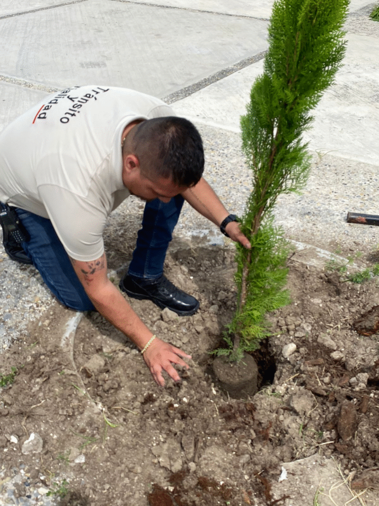 Con el firme compromiso de contribuir al cuidado del medio ambiente y mejorar la imagen de sus instalaciones, el personal de Tránsito Municipal llevó a cabo una jornada de reforestación, plantando árboles en el área verde de sus oficinas.