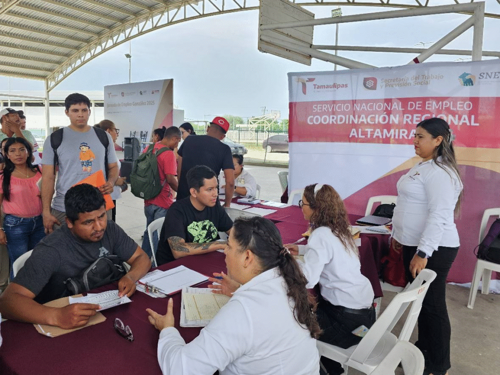 González, Tamaulipas, 25 de agosto de 2025 – En una acción coordinada entre el Gobierno de Tamaulipas y el Gobierno Municipal, se llevó a cabo la Jornada de Empleo González 2025 en la Unidad Deportiva de Villa Manuel. El evento, organizado por la Secretaría del Trabajo y Previsión Social a través del Servicio Nacional de Empleo, ofreció más de 100 vacantes con rangos salariales que inician en $8,480.00 pesos mensuales y hasta los 26,176.75 pesos.