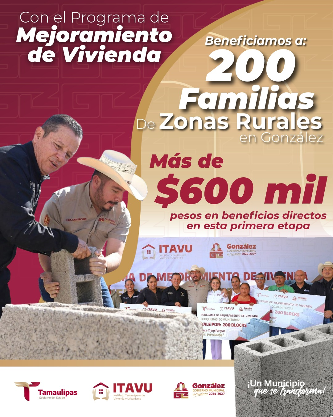 El Gobierno de González informó que esta primera etapa enfocada íntegramente en las comunidades rurales, se entregan paquetes de 200 blocks por familia con igual número de beneficiarios. La característica principal de este esquema es el ahorro total para la economía familiar: el Gobierno Municipal absorbe el 100% del costo del material y la mano de obra, asegurando que los beneficiarios no tengan que desembolsar ni un solo peso.