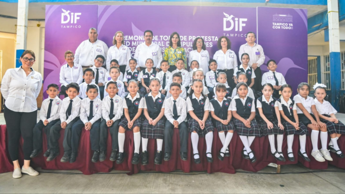 Con la finalidad de impulsar la participación de las niñas, niños y adolescentes en la difusión de sus derechos, la Presidenta del Sistema DIF Tampico, Sra. Luz Adriana Villarreal Anaya, tomó protesta a los integrantes de la Red Municipal de Impulsores de la Transformación ciclo escolar 2024-2025.